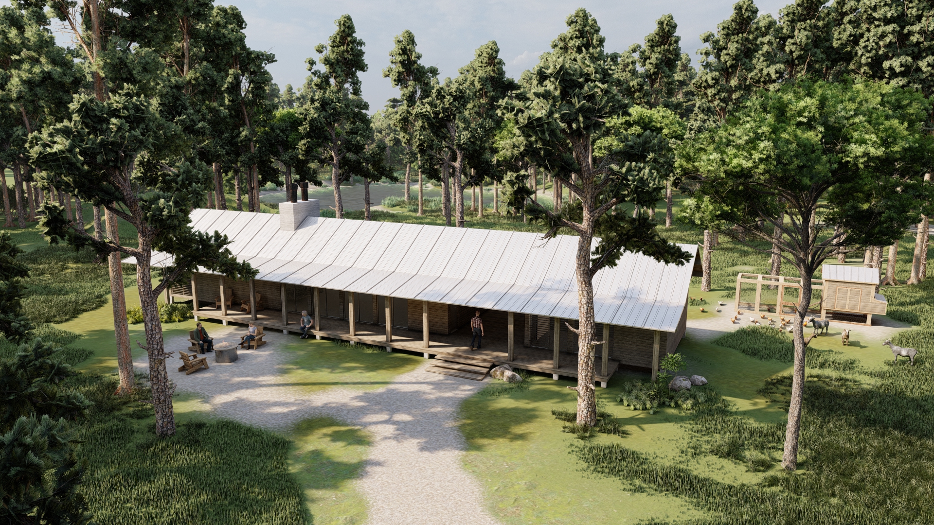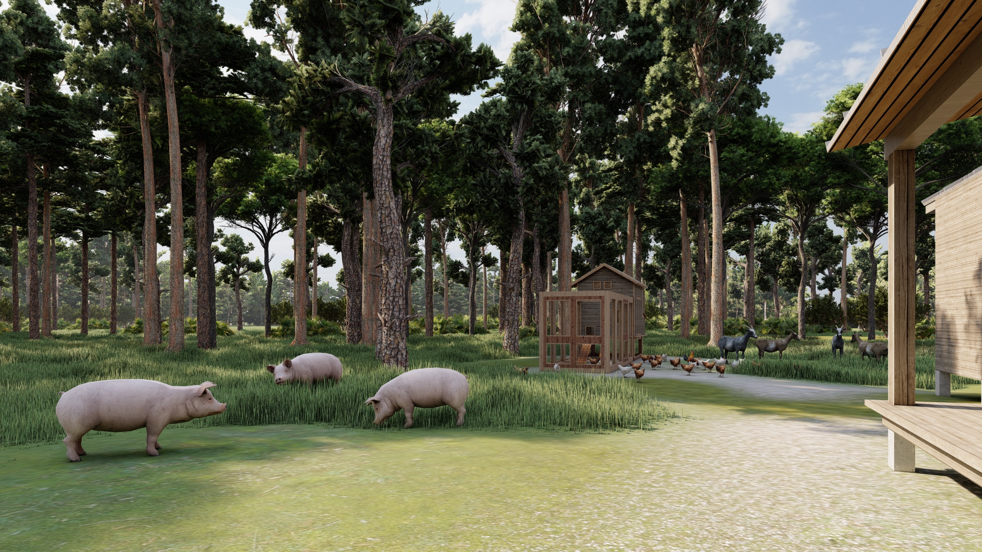 The Farm at Okefenokee is approximately 300 acres. Located in South Georgia on the border of the Okefenokee National Wildlife Refuge, Cadence led the master planning efforts for this Agritourism focused project. The master plan includes design elements which foster the objectives to restore and preserve agricultural lands, supply alternative sources of power, create educational opportunities to the public, and provide ecotourism experiences for guests. The working farm is currently testing and harvesting a variety of organic based and heirloom crops, and will operate as a supplemental food supply for the staff and visiting guests. Through additional regenerative agriculture practices, the master plan design works with the natural land to sequester carbon storage, increase soil water holding capacity, stop soil erosion, protect the purity of groundwater and establish conditions for crops to become more disease and pest resilient. Residents that reside in this farm development have access to standing gardens, orchards, row crops, pigs, goats, bees and chickens. The majority of food needed is provied by onsite food growth and animal husbandry. Cabins are set in three distinct neighborhoods The Pasture, The Farm, and The Orchard.