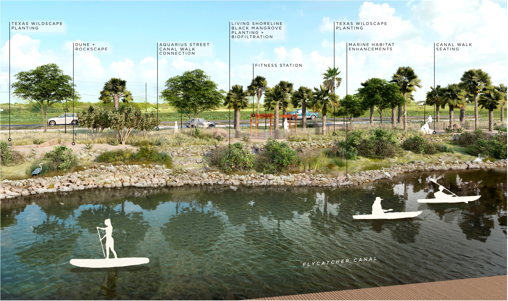 In 2020 Cadence began their services by conducting a master plan audit and provided a revised master plan for the 242-acre site. Whitecap is located on a barrier island adjacent to Corpus Christi, Texas, and northeast of the Padre Island National Seashore. The master plan utilizes regenerative design and nature-based design solutions that are contextual to the local Padre Island marine and terrestrial ecology.